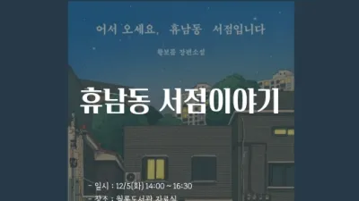 파주 월롱도서관, 12월 5일 황보름 작가와의 만남 운영       파주시 월롱도서관은 오는 5일 ‘어서오세요, 휴남동 서점입니다’의 황보름 작가를 초청하여 작가와의 만남을 진행한다.   북토크 형식으로 진행되는...