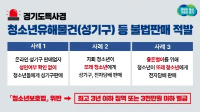 2023-11-14 01:21:17청소년에게 성인용품을 성인인증 없이 판매한 유명 사이트와 청소년 등 경기도 특사경, 청소년보호법 위반 5명 적발