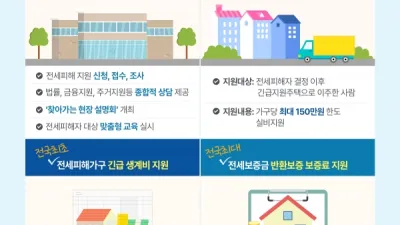 경기도 전세피해지원센터 약 150일 운영. 지원건수 8천400 넘어 ○ 경기도, 지난 3월부터 전세피해자에 대한 지원 정책을 가장 선도적으로 마련해 왔으며 앞으로도 전세피해 지원 정책 발굴에 총력을 기울일 예정 - 도 자체적으로 전세피해지원센터 신속 개소 ...
