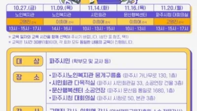 파주시‘우리아이 성교육 어떻게 할까요?’ 무료특강 - 전문강사와 함께 하는 부모가 알아야 할 자녀 성교육 해법 제시 파주시는 10월 27일부터 11월 20일까지 ’우리아이 성교육 어떻게 할...