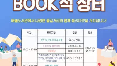 파주시 해솔도서관, 벼룩시장「운파인파 북적 장터」오는 28일 개최 - 도서관을 중심으로 시민이 함께하는 화합의 장 마련 파주시 해솔도서관은 오는 28일 시민과 함께 만드는 동네 벼룩시장 ‘2023 해솔도서관 운파인파 북적...