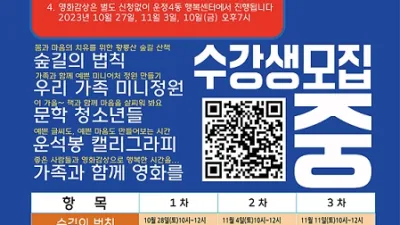 파주시 운정4동 주민자치회, 문화 강좌 운영…10월 28일까지 모집 파주시 운정4동 주민자치회는 10월 27일부터 11월 19일까지 2023년 문화 강좌 프로그램을 운영한다. 주민자치회는 관내 ...