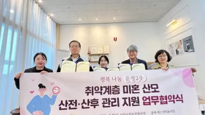 파주시 운정2동·곁에에스테틱&네일, 취약계층 미혼 산모 지원 파주시 운정2동은 20일 운정6동에 소재한 ‘곁에에스테틱&네일’과 취약계층 미혼 산모의 경제적 부담을 덜고 심...