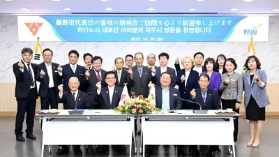 파주시 일본 자매도시 하다노시 대표단 파주시장 예방 - 파주개성인삼 축제 참가 및 관내 시찰 지난 20일 파주시의 국외 자매도시인 일본 하다노시 대표단이 파주시를 방문했다. 이번 방문은 파주 개성인삼 축제 ...