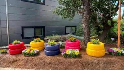 파주시 운정4동, 쓰레기 불법 투기 일대 꽃밭으로 재탄생 - 폐타이어 재활용 화단 조성 사업 추진 파주시 운정4동은 20일 쓰레기 불법 투기 지역 일대에 폐타이어를 재활용한 화단 조성사업을 시행했다. 이번 사업은 행복마...