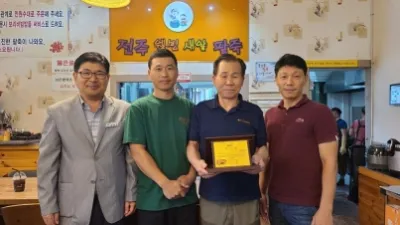 파주시 문산읍, 재능기부 행복나눔가게 6호점 전주웰빙새알팥죽에 감사패 전달 파주시 문산읍은 30일 재능기부 행복나눔가게 6호점 전주웰빙새알팥죽에 감사패를 전달했다. 문산읍은 지역 내 8개의 행복나눔가게와 협...