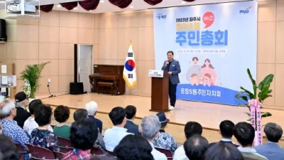 파주시 운정5동, 개청 후 첫 주민총회 개최…4건 선정 파주시 운정5동 주민자치회는 8월 19일 교하도서관에서 ‘제1회 운정5동 주민총회’를 성황리에 개최했다. 이날 총회에는 김경일 파...