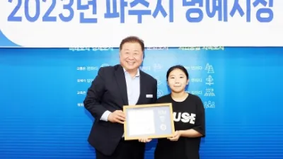 파주시, 제12대 일일명예시장에 파주고 학생 위촉 - 1학년 유채원 학생, 파주일꾼이 되다 파주시는 9일 관내 파주고등학교 유채원(15세) 학생을 제12대 일일명예시장으로 위촉했다. 제12대 일일명예시장은 이날 김경일 ...