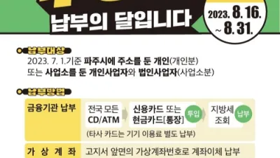 2023-08-10 02:17:19파주시, 주민세 8월 31일까지 신고·납부하세요