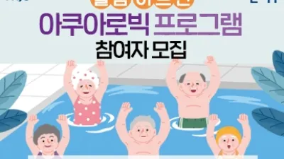 파주시, 홀몸어르신 대상 아쿠아로빅 운영…참여자 20명 모집 - 어르신 모두가 건강하고 행복한 지역사회 실현 파주보건소는 건강증진과 체력 향상을 위해 마련된 아쿠아로빅 프로그램 3·4기 참여자를 모집한다. ...