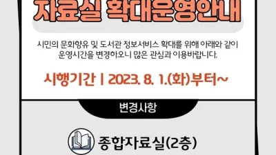 2023-08-01 02:38:19파주문산도서관 자료실 8월 1일부터 야간연장 확대 운영