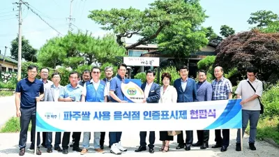 파주쌀 사용 음식점 현판식 개최…인증표시제 실시 파주시는 7월 19일 파주쌀 사용 음식점 현판식을 개최했다. 파주시는 파주쌀의 내수소비 증진 및 소비자에게 파주쌀 사용 음식점 정보를 제공하는 ‘파...
