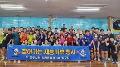 파주시청 직장운동경기부 탁구팀 재능기부…생활체육 활성화 파주시 직장운동경기부 탁구팀이 7월 6일 운정에 위치한 탁구장에서 재능기부 행사를 진행했다. 이번 행사에는 김상학 감독과 코치, 선수 등 8명이 참여해...