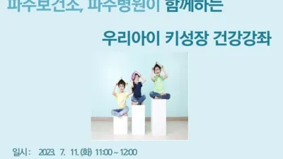 파주보건소, 우리아이 키 성장 건강관리 강좌 열어 - 소아청소년과 전문의가 전해주는 건강관리법         파주보건소는 7월 11일 파주병원 별관 3층 대회의실에서 학부모를 대상으로 키 성장 건강관리 공개강좌를 개최한다.  ...