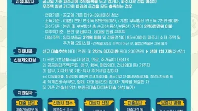 2023-07-03 01:14:24파주시, 하반기 청년 전·월세 임차보증금 대출이자 지원…연 최대 200만 원