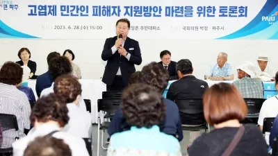 파주시, 박정 국회의원과 ‘고엽제 민간인 피해자 지원방안 마련을 위한 토론회’ 공동 개최 - 김경일 파주시장, “파주시 자체 지원 추진하며 국가 차원의 보상 적극 주장할 것” 파주시와 박정...