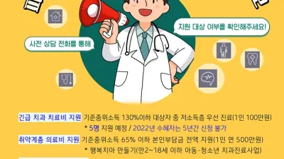 파주시, 북한이탈주민 위한 촘촘한 의료복지 지원 - 긴급 치과치료비 지원 홍보 및 접수 시작 파주시는 북한이탈주민 취약계층 의료 복지 사각지대 해소를 위해 긴급 치과치료비 지원 대상자를 신청받고 있다. 지원...