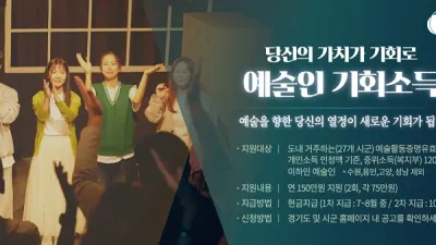 파주시, 경기도 예술인 기회소득 접수 파주시는 6월 30일부터 8월 11일까지 지역 예술인의 창작 활동을 독려하기 위해 경기도와 공동으로 추진하는 ‘예술인 기회소득’ 지급 사업의 신청을 받는다. &...