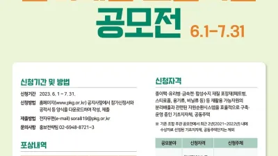 재활용 가능자원 분리배출 모범시설 공모전에 도전하세요 - 모범시설 10곳 선정해 2,800만 원 지급…7월 31일까지 제출 파주시는 (사)한국포장재재활용사업공제조합에서 주최하는 2023년 재활용 가능자원 분리배출 모범시...