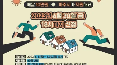 2023-06-01 05:48:33파주시, 청년 60명에게 월세 지원한다…연 최대 120만 원 - 만 19~39세 이하 청년 대상 6월 1일부터 30일까지 모집