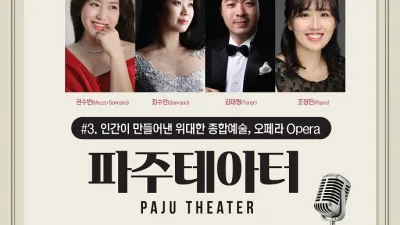 파주시, 5월‘아침문화살롱’개최…오페라의 세계로 초대합니다 - 매달 넷째 목요일 아침에 즐기는 고품격 토크콘서트       파주시의 아침문화살롱 공연이 오는 25일 오전 11시 조리읍행복센터 문화광장에서 열린...
