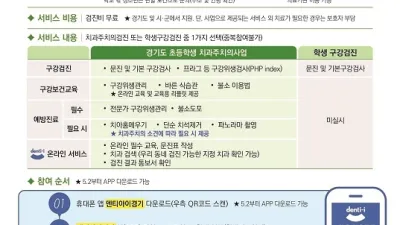 파주보건소, 초등학교 4학년 4,900명 대상 치과주치의 사업 실시 - 구강건강관리 서비스 제공…충치 예방 및 치아 건강증진 파주보건소는 초등학교 4학년 4,900명을 대상으로 5월 2일부터 11월 30일까...