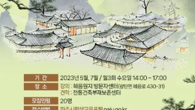 파주시, 혜음원지-임원경제지 연계 프로그램 ‘섬용지 학교’운영 - 조선시대‘서유구’와 고려전기 ‘혜음원’의 만남 파주시는 혜음원지-임원경제지 연계 프로그램으로 전통 건...