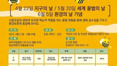 2023-04-17 09:59:03파주적성도서관, 양봉 체험 연계 프로그램 운영…마을·학교 협력