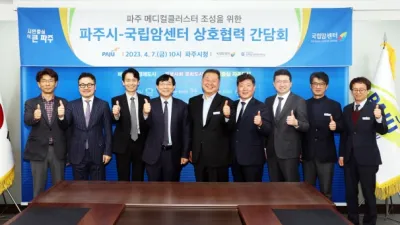 파주도시관광공사, 세계적인 바이오클러스터 구축에 앞장 - 파주 메디컬클러스터 조성을 통한 바이오클러스터 육성에 앞장서         파주도시관광공사(사장 최승원)는 지난 7일, 파주시 접견실에서 파주시(시장 김경일), 국립암센터(원장...