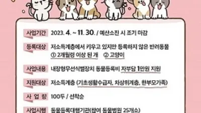 파주시, 장애인 및 저소득계층 반려동물 진료비 등 지원 - 동물복지 및 주민복지…11월 30일까지 신청       파주시는 4월 3일부터 11월 30일까지 ‘장애인 및 저소득계층 반려동물 진료비 등 지원 사...