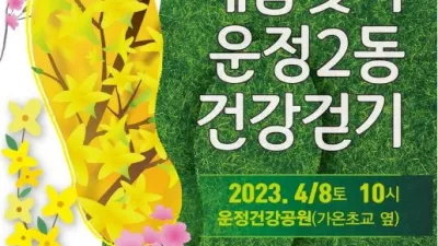 파주시 운정2동, 제1회 새봄맞이 운정2동 건강걷기 개최 - 운2 좋고, 정2 많은         파주시 운정2동은 4월 8일 오전 10시 운정건강공원(가온초교 옆)에서 「제1회 새봄맞이 운정2동 건강걷기」를 개최한다고 밝혔다. &n...