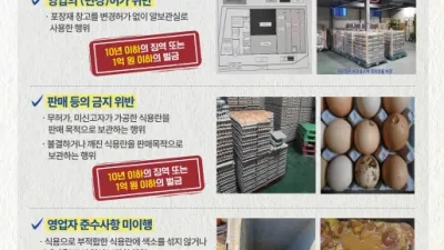 경기도 특사경, 식용란 유통·판매업소 360곳 대상 불법행위 집중 단속   ○ 4월 3일부터 4월 14일까지 식용란 유통환경·사용 불법행위 집중 단속 - 도내 식용란 유통판매업소 및 식용란 사용업소 360개소 집중 단속 - 가정용․업무...