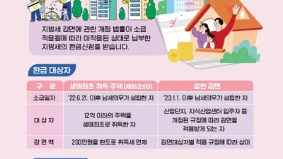 파주시, 생애 최초 주택 취득세 감면 확대 적용 - 12억원 이하 생애 최초 주택 구입자…200만원 한도 취득세 면제 - 소득 관계없이 2022.6.21. 이후 소급 적용, 지자체에 환급 신청 파주시가 생애...