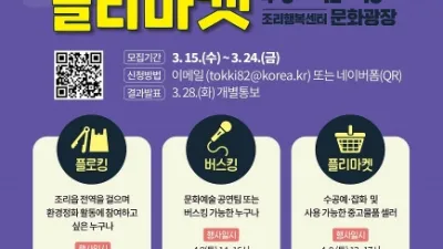 파주시 조리읍, 제1회 요리조리 플로킹&버스킹 참가자 모집 - 문화·예술·탄소중립 결합한 지역문화 플랫폼, 3월 24일까지 접수 파주시 조리읍은 오는 24일까지 ‘제1회 요리조리 플로킹&버스킹&...