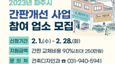 2023-01-26 03:03:452023년 파주시 간판개선사업 추진...관내 30개 업소 대상
