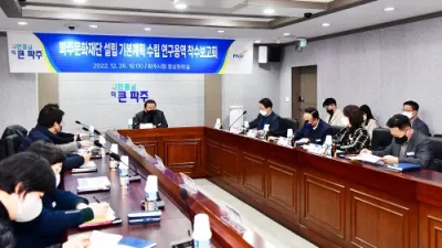 파주문화재단 설립 연구용역 착수보고회...시민중심 문화도시 첫 발 - 재단 설립 본격 가동, 2024년 10월 출범 목표 파주시(시장 김경일)가 민선 8기 공약사항인 ‘파주문화재단 설립’ 추진을 위해 26일 문...