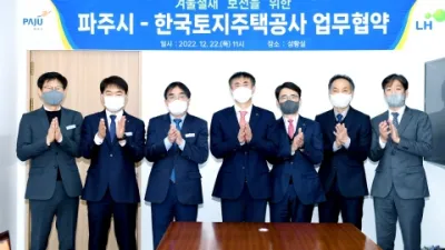 파주시, 한국토지주택공사와 겨울철새 보전 업무협약 체결 - 탄현면 민통선 내 농경지 대상...볏짚존치, 볍씨뿌리기 등 시행       파주시(시장 김경일)는 22일 한국토지주택공사와 겨울철새 보전협력 방안에 대한 업무협약을 체결했다. &nbs...
