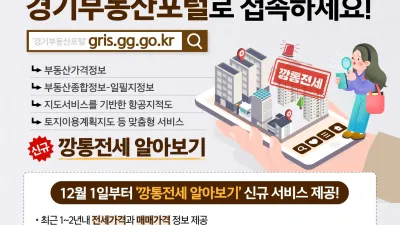 “깡통전세인지 궁금하다면 경기부동산포털로 접속하세요”   도, 1일부터 ‘깡통전세 알아보기’ 신규 서비스 제공   ○ 깡통전세 피해예방을 위해 도민 스스로 쉽게 확인할 수 있도록 신규 서비스 구축 - 현재 거...