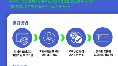 2022-11-11 01:22:11파주시, 도서관 회원증 온라인 발급 시행