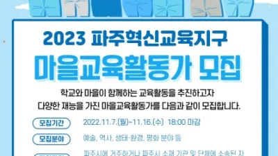 2022-11-08 05:47:38파주시, 파주혁신교육지구 마을교육활동가 모집