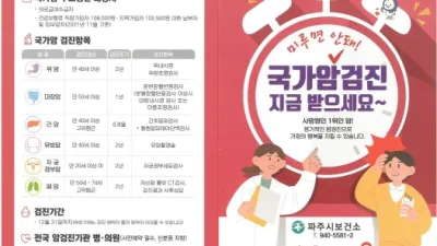 2022-10-04 05:22:14파주시, 저소득층 암환자 의료비지원 사업 추진 - 암 진단 검사비용, 암 치료 비용 및 약제비 지원