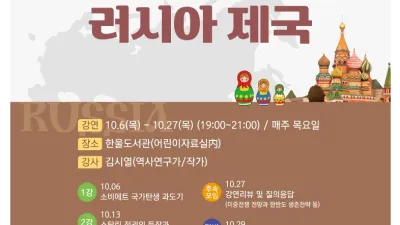 파주시 한울도서관,‘유럽역사의 흥망성쇠, 러시아제국’강좌 개최 - 2022년 도서관 길 위의 인문학 사업 파주시 한울도서관은 10월 한 달간 ‘유럽역사의 흥망성쇠: 그 마지막 퍼즐 러시아...