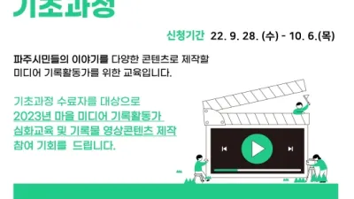 2022-09-28 01:53:17파주중앙도서관, 미디어 기록활동가 기초과정 참여자 모집 전문가 양성...다양한 콘텐츠 제작