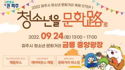 2022-09-26 01:42:04“청소년을 문화로 초대합니다” 파주시 청소년 문화거리 축제 24일 개최 - 버스킹, 체험부스, 에어바운스 등 즐길거리 풍성