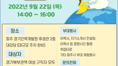 2022-09-23 02:43:19파주시, 여성취업박람회 ‘일뜰날’개최 - 파주새로일하기센터에서 일자리와 만나