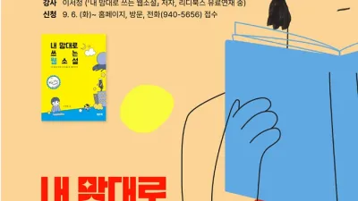 파주중앙도서관, 내 맘대로 쓰는 웹소설의 저자 이서정 작가와의 만남 파주 중앙도서관(관장 권예자)은 오는 24일 이서정 작가를 초대해 내 맘대로 쓰는 웹 소설을 주제로 작가와의 만남을 진행한다. 이번 작가와의 만남은 중앙도서관 5층에 마련한 청소년 컬렉션 ...