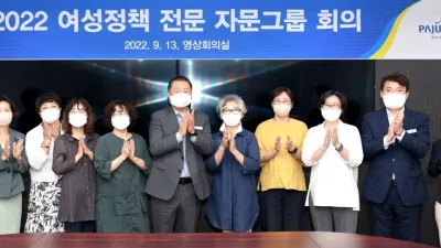 파주시, 여성정책 전문 자문그룹 회의 개최 성 평등한 파주시 조성을 위한 민·관 협력 추진 파주시(시장 김경일)는 9월 13일 파주시청 본관 2층 영상회의실에서 파주시장, 여성정책전문가, 여성단체 및 시설 대표, 시민대표가 참석한 가운데 여성정책 전문 자문...