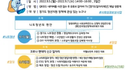 2022-09-05 02:45:12함께 하면 달라질 경기 청년 일자리! ‘제2회 경기 청년 일자리 온라인 포럼’ 5~7일 개최