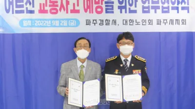 파주경찰서, 사) 대한노인회 파주시지회와 어르신 교통사고 줄이기 위한 업무협약