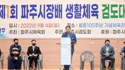 파주시,‘제1회 파주시장배 생활체육 검도 대회’개최 파주시(시장 김경일)는 9월 4일 월롱 100주년 기념체육관에서 제1회 파주시장배 생활체육 검도 대회를 개최했다. 파주시 체육회가 주최하고 파주시검도회(회장 최대순)가 주관하며, 파주...